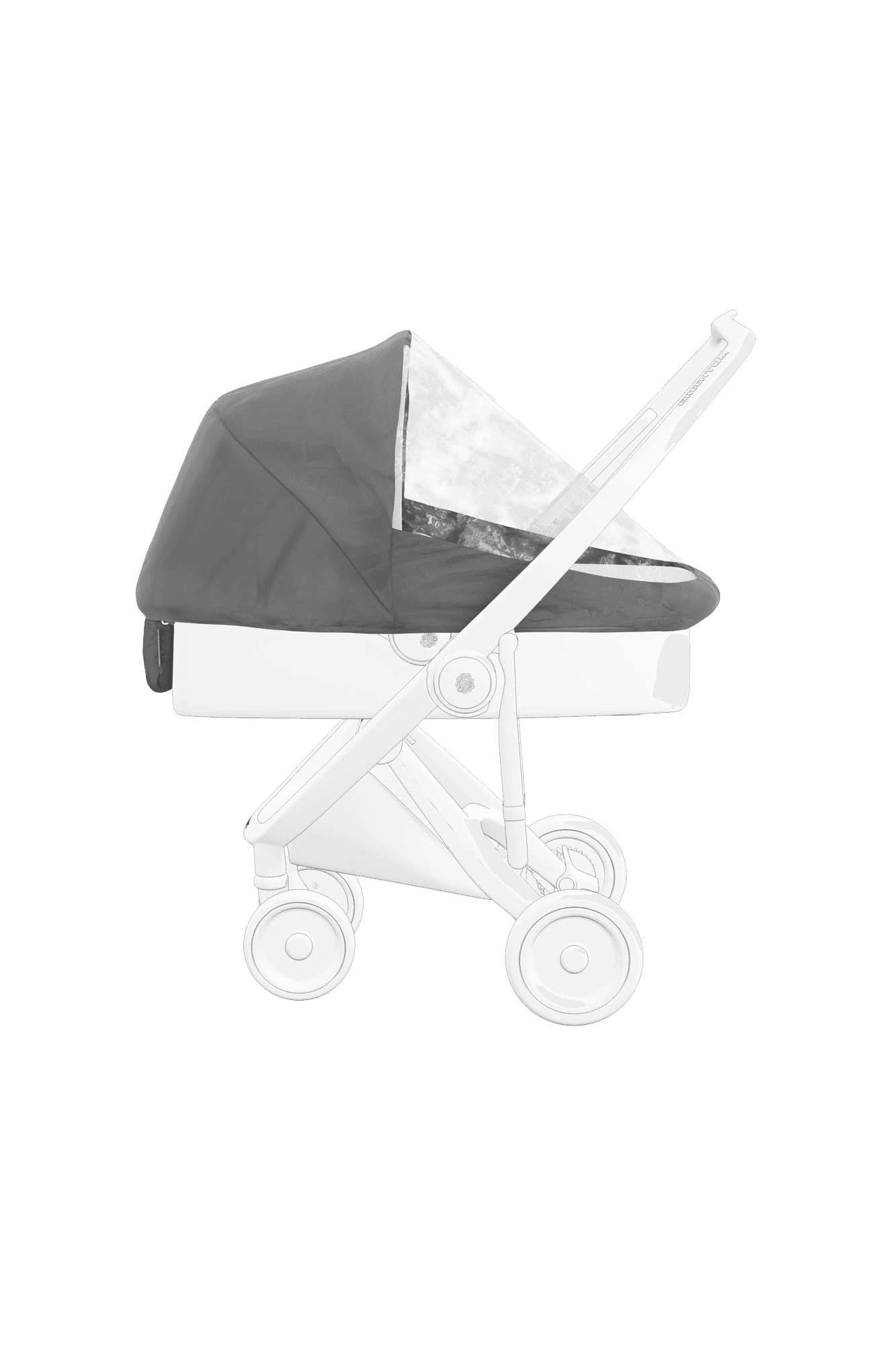 Wir lassen euch nicht im Regen stehen! Mit unserer PVC-freien Regenabdeckung bleibt dein Kind trocken. Die Abdeckung wird in einer Tasche geliefert, die am Rahmen befestigt werden kann.